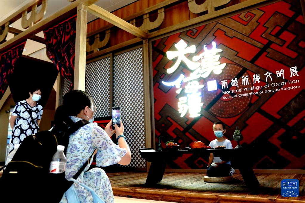 7月3日,观众在中国航海博物馆参观“大汉海疆:南越航海文明展”。