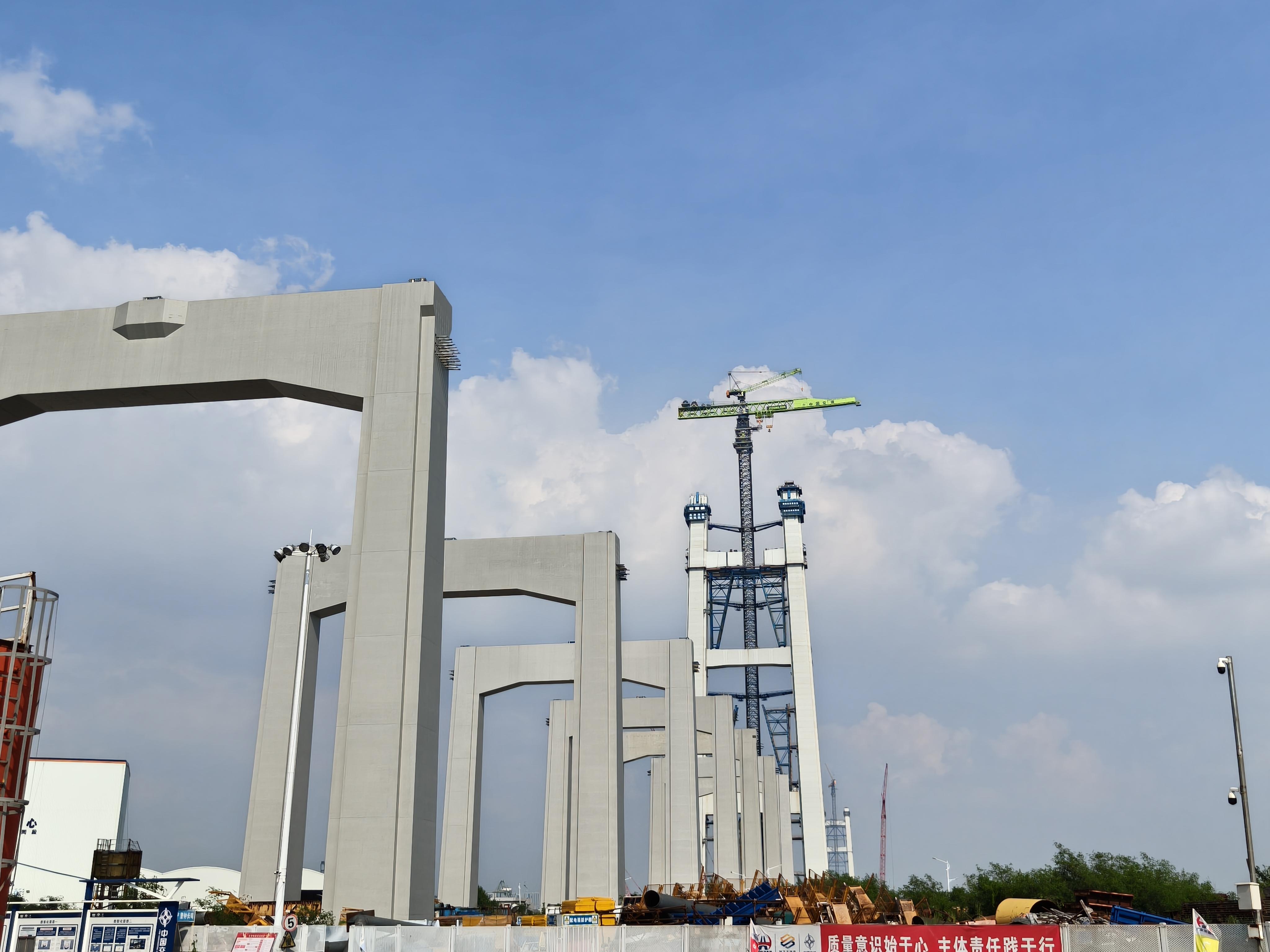 前所未有的设计方案,带来了世界级的技术挑战。“双层16车道的超宽桥面,意味着单侧桥塔需要承受超过20万吨的巨大竖向压力,这是传统桥梁结构难以承受之重。”崔冰介绍,面对这一核心难题,团队创造性采用“钢壳—混凝土”组合结构索塔设计方案,有效强化了索塔各项结构性能,并显著减少塔身自重,这也是在世界范围内首次将该型结构用于大跨度悬索桥。