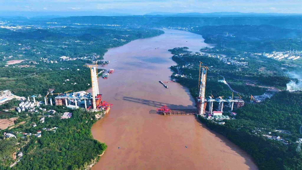 10月5日,世界最高双联主塔——石沱长江大桥6号主塔顺利封顶。至此,大桥两座主塔全部封顶,标志着大桥建设取得突破性进展,为后续为全线按期建成通车打下坚实基础。