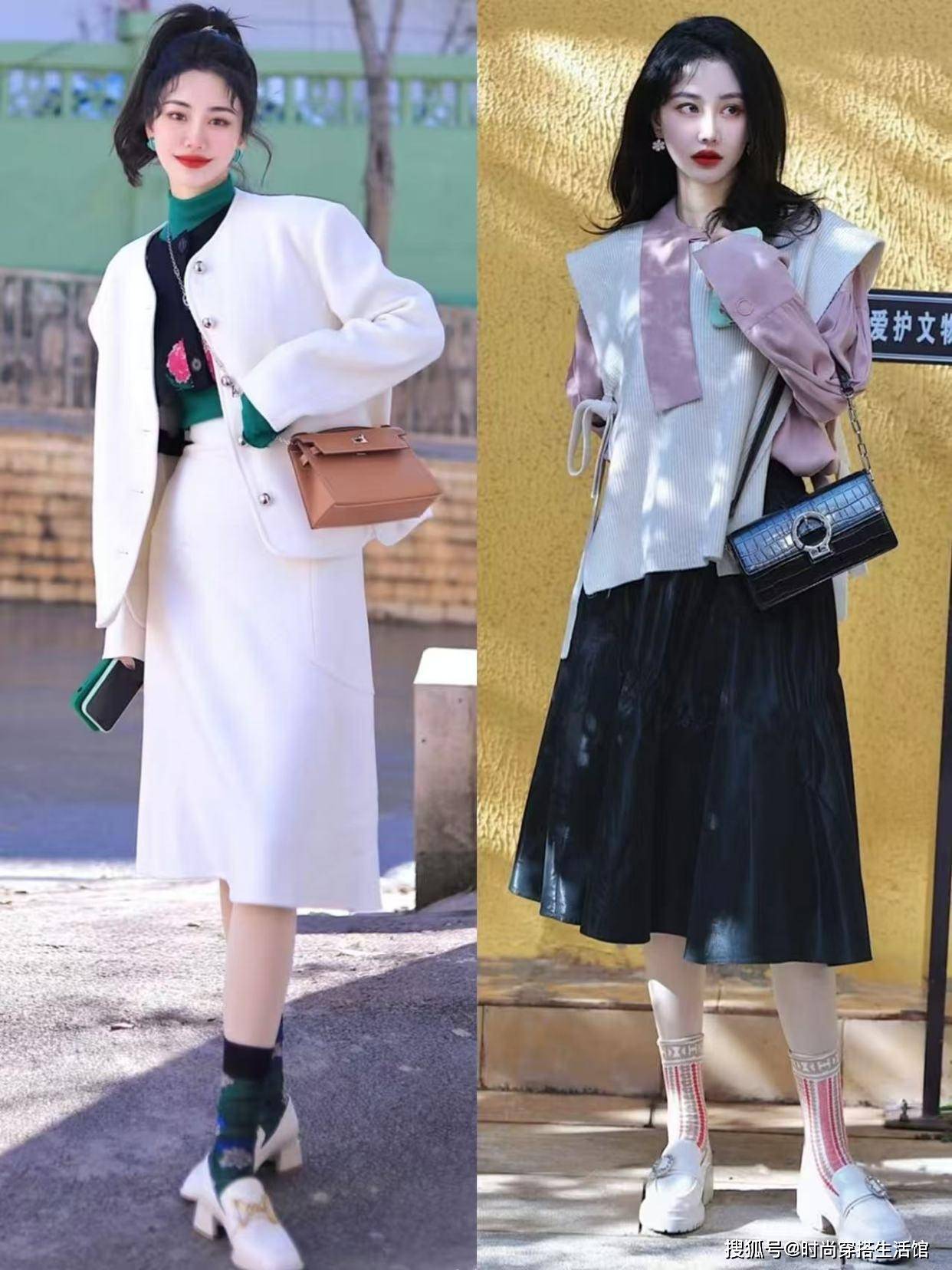 最后秋冬季节穿裙子自然少不了乐福鞋,毕竟乐福鞋的主要特征就是优雅又复古,完全不挑年龄和场合,超级适合出门逛街、约会和聚会的场合穿。