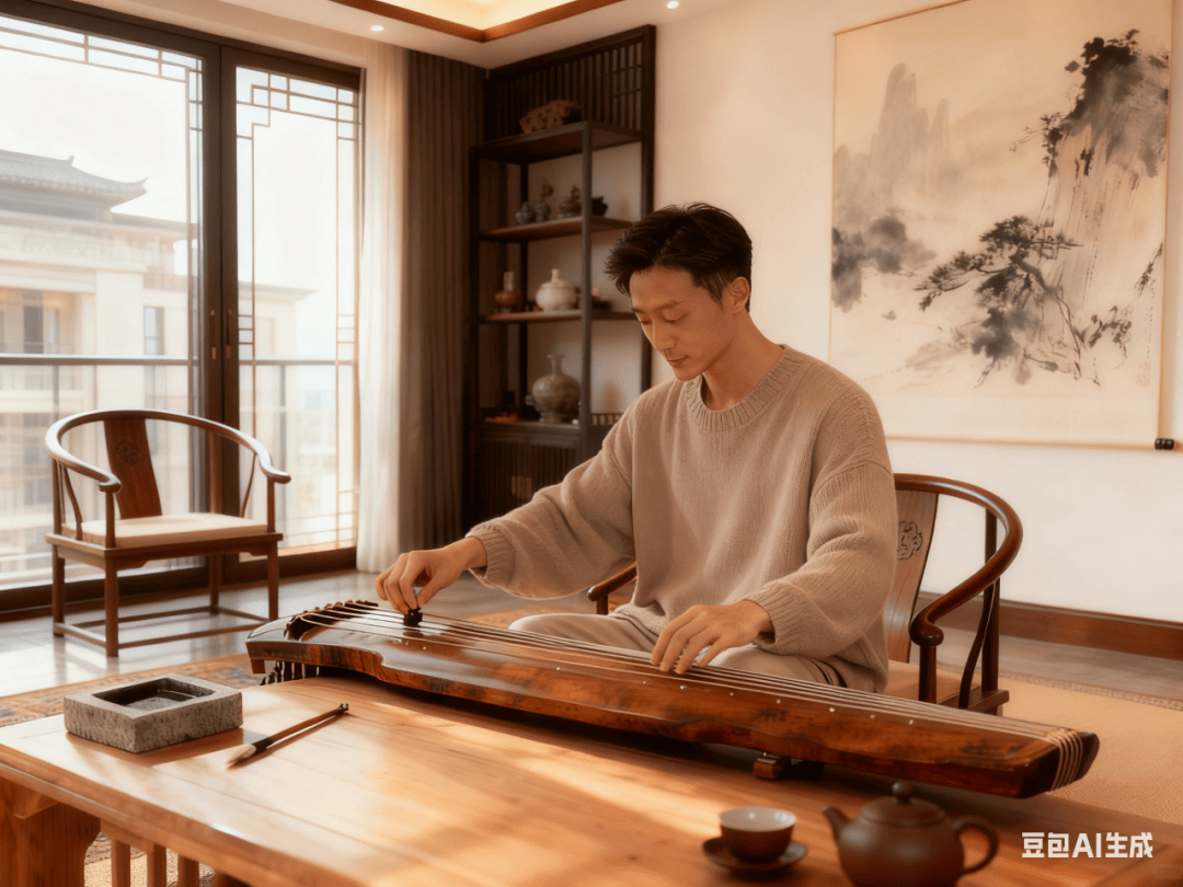 弹奏宫调式古琴曲《秋风词》,调节情绪节律。