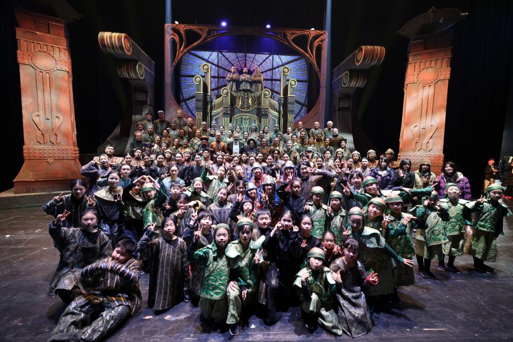 1月10日,在重庆大剧院,歌剧《图兰朵》演出结束后,重庆大剧院童声合唱团和意大利剧团集体合照。新华社发